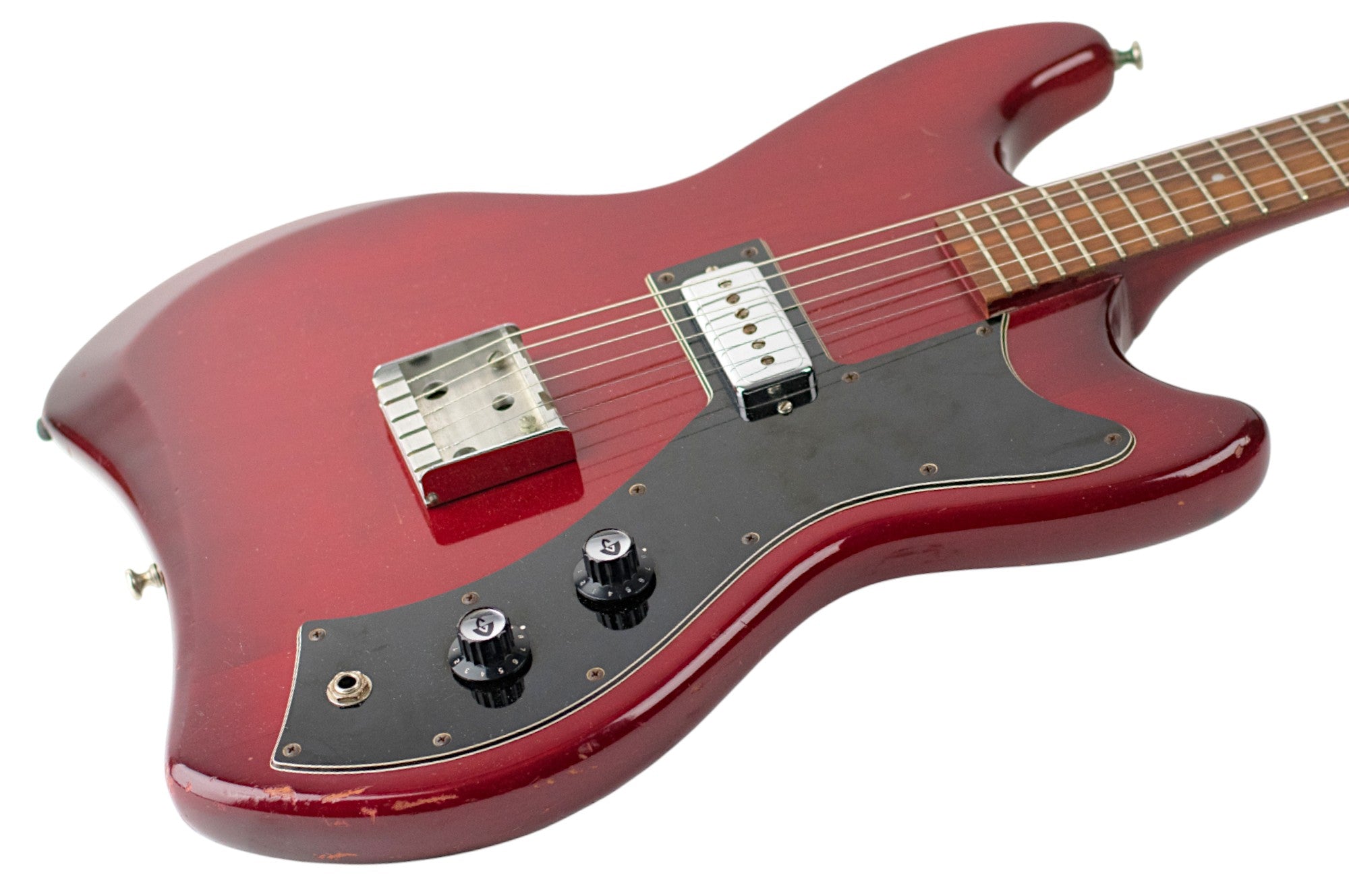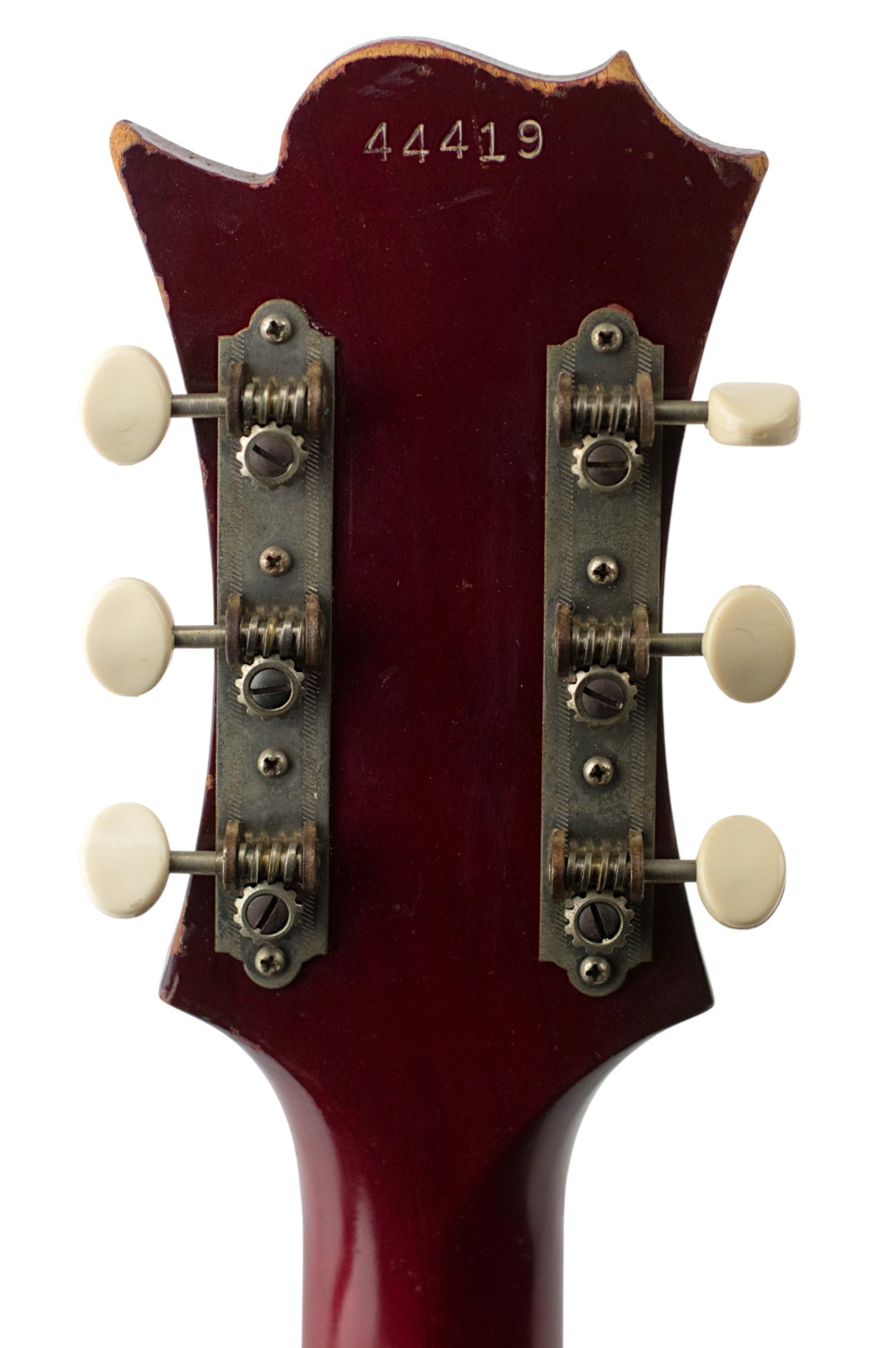 Freshly inspected and set up in-house by our esteemed Guitar Tech. In Very Good Vintage condition with normal wear for an instrument of this age, including scratches, dings, edgewear, and natural aging of parts and finish. This early Hoboken-built instrument is completely original with the possible exception of the Bone nut. Just enough wear and tear to give it a great vintage vibe. These mid‑’60s S‑50 Jet Stars are relatively scarce compared with Starfires and M‑series archtops, but they remain one of the more affordable USA‑made, set‑neck vintage solid bodies from a major brand. See below for more details and specifications.