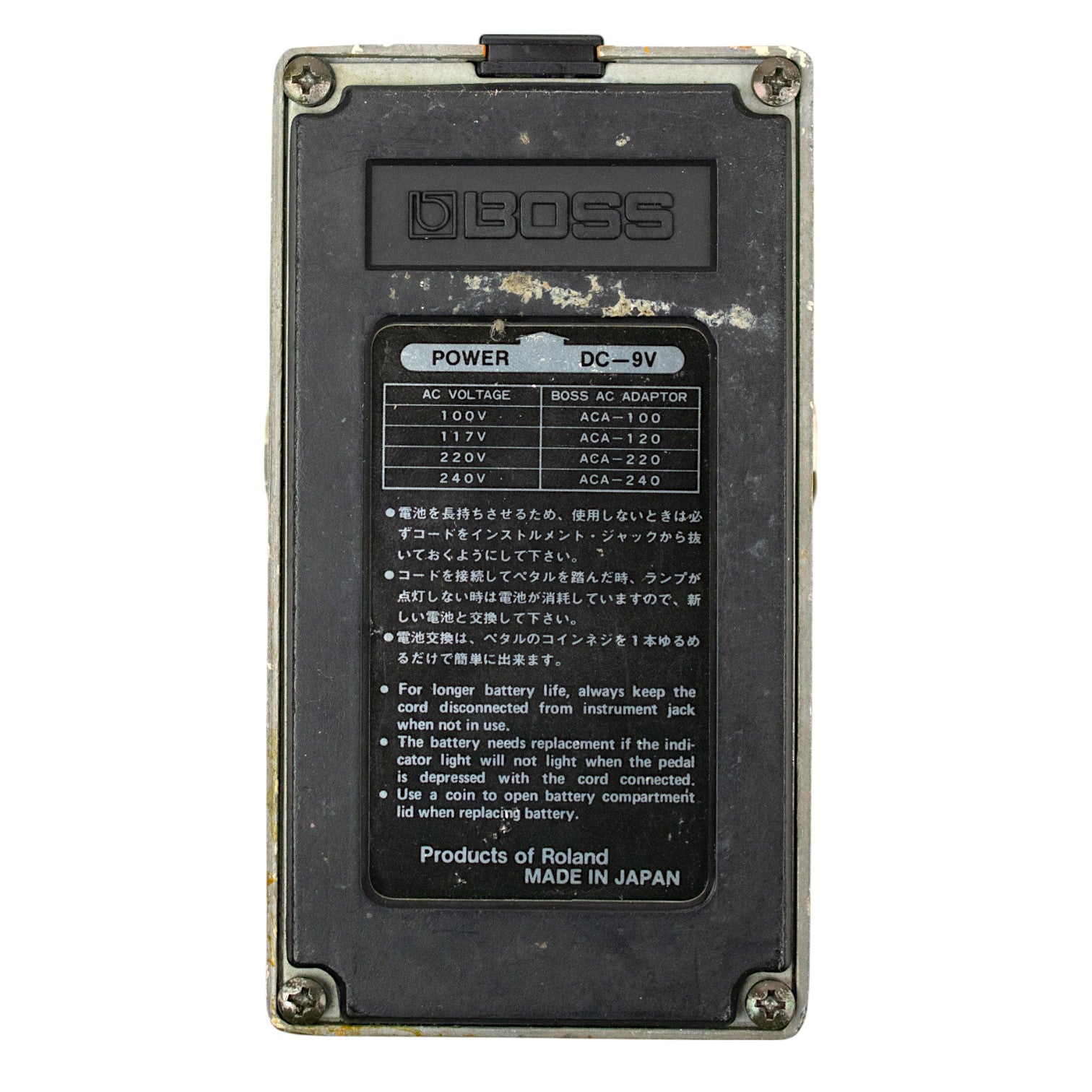 This 1980 Boss DS-1 Distortion Pedal is in Good vintage condition with normal signs of handling and use. This early vintage Japanese model has the Long Dash in the model number, silver screws securing the battery compartment, a black label on the back, and contains the TA7136AP chip. This is the one you want.