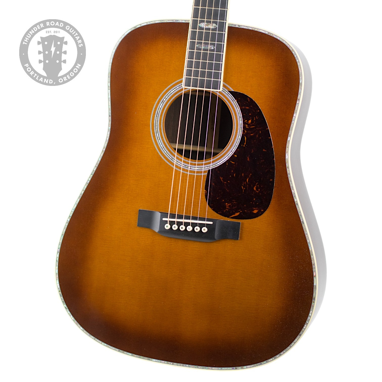 Freshly inspected and set up in-house by our esteemed Guitar Tech. In Excellent condition with modest wear, including faint scratches, a light spot of wear in the middle of the back, and other signs of normal handling and use. Powerful sounding Martin Dreadnaught with 1933 Ambertone Abalone appointments. See below for more details and specifications.