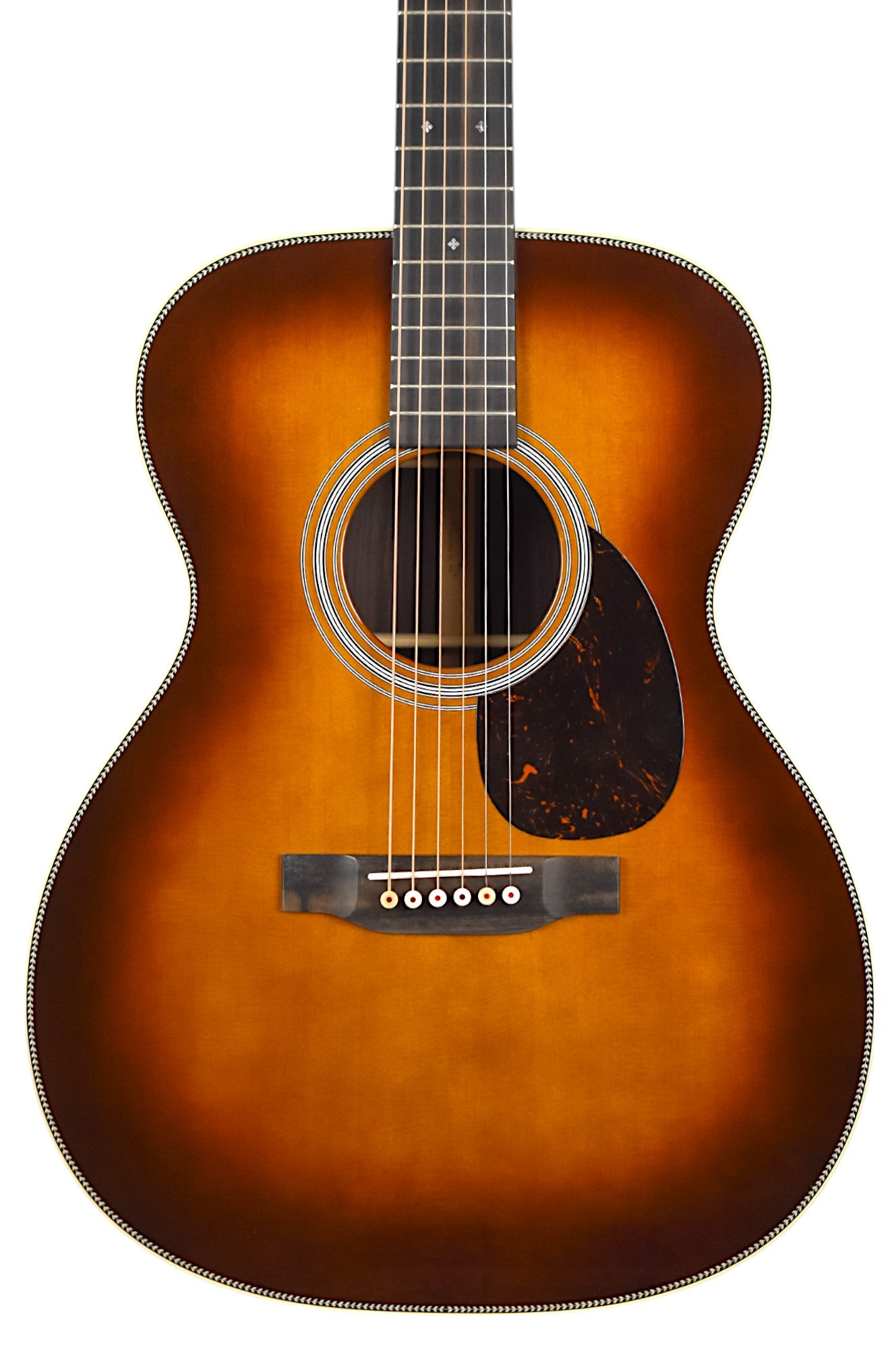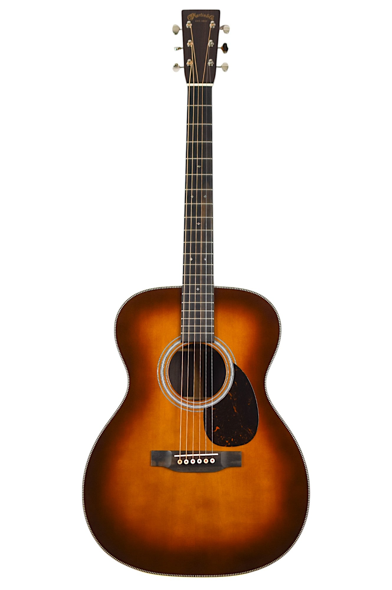 The satin neck with a Golden Era (GE) Modified Low Oval profile and high-performance taper ensures smooth playability. Complete with bold herringbone top inlay, antique white binding, and an ebony bridge with bone pins, the OM-28 is a timeless classic for today’s player. Available in a variety of striking gloss options, it’s a guitar you can trust to unleash the artist within.
