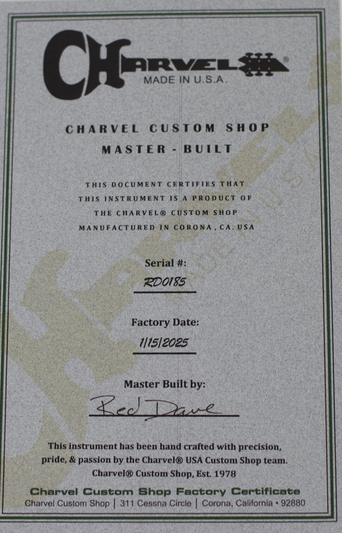 FROM CHARVEL CUSTOM SHOP: