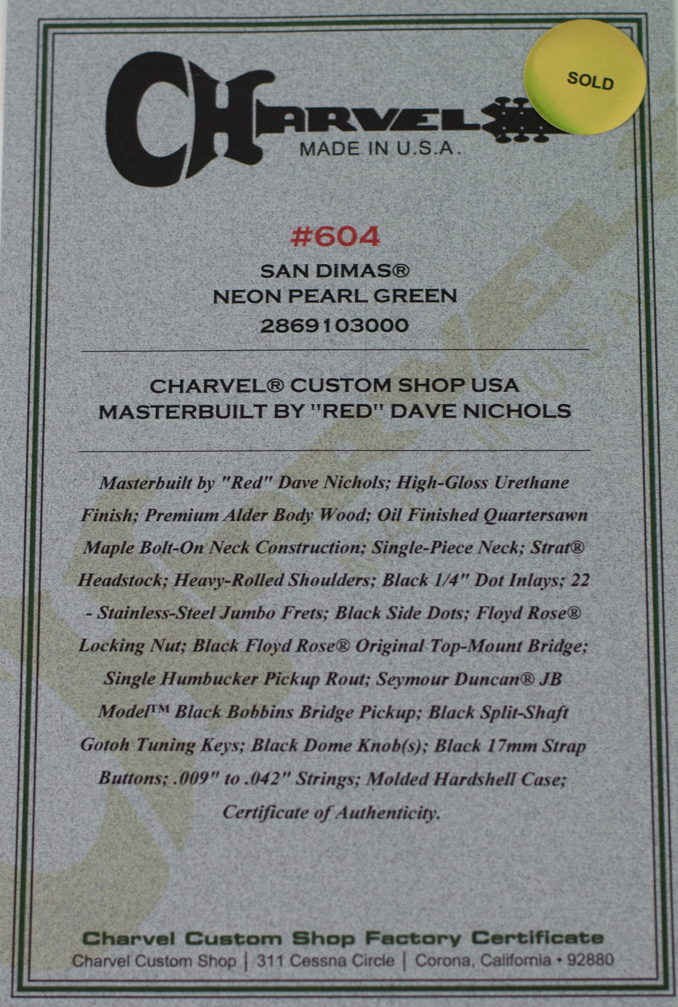 Master Builder Dave Nichols, nicknamed "Red Dave" for his long red hair and beard-joined the Charvel®/Jackson® Custom Shop in 2005 after a 16-year stint at the Fender® Custom Shop, advancing to master builder in 2006.