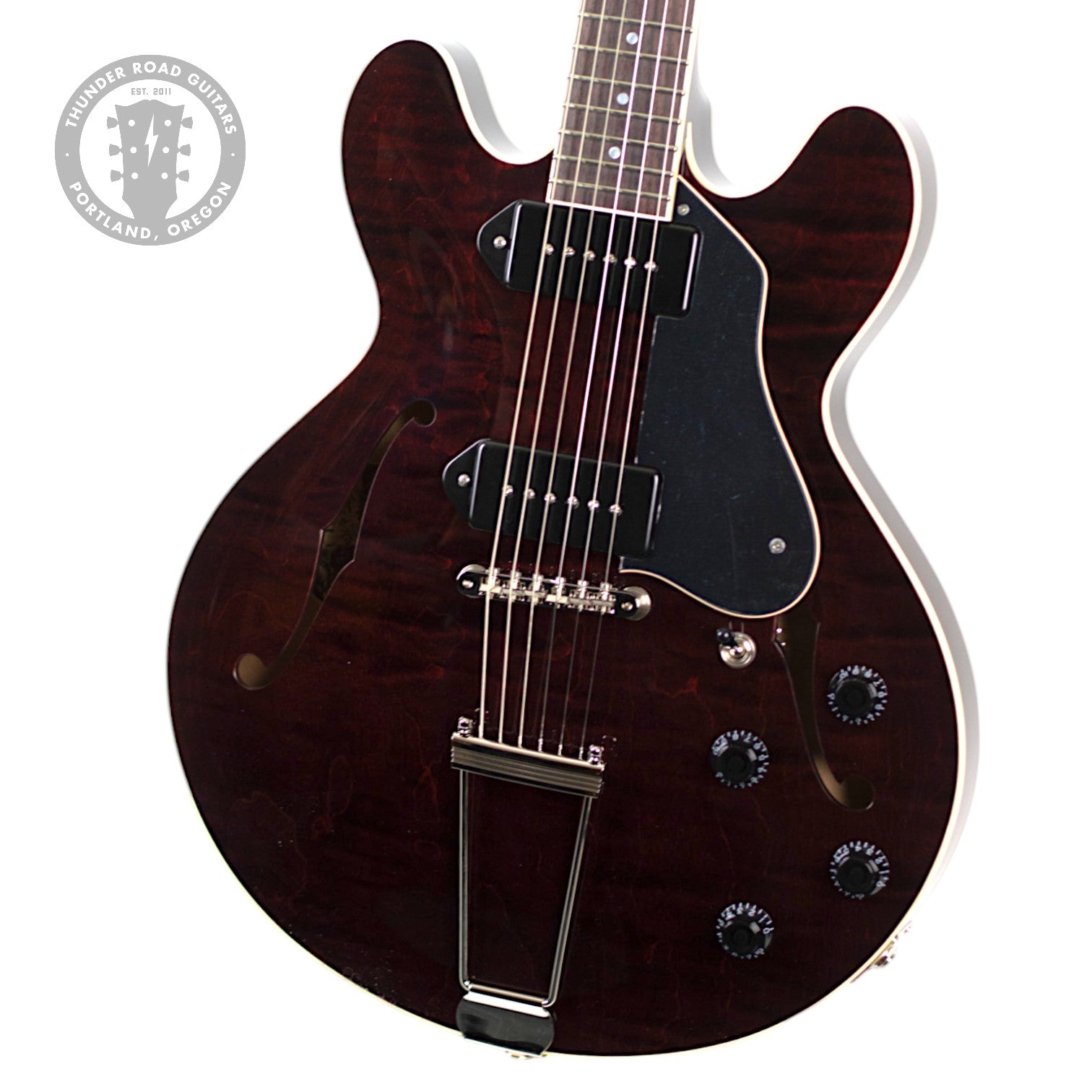 Lightly Figured Laminated Maple Body in Oxblood Finish