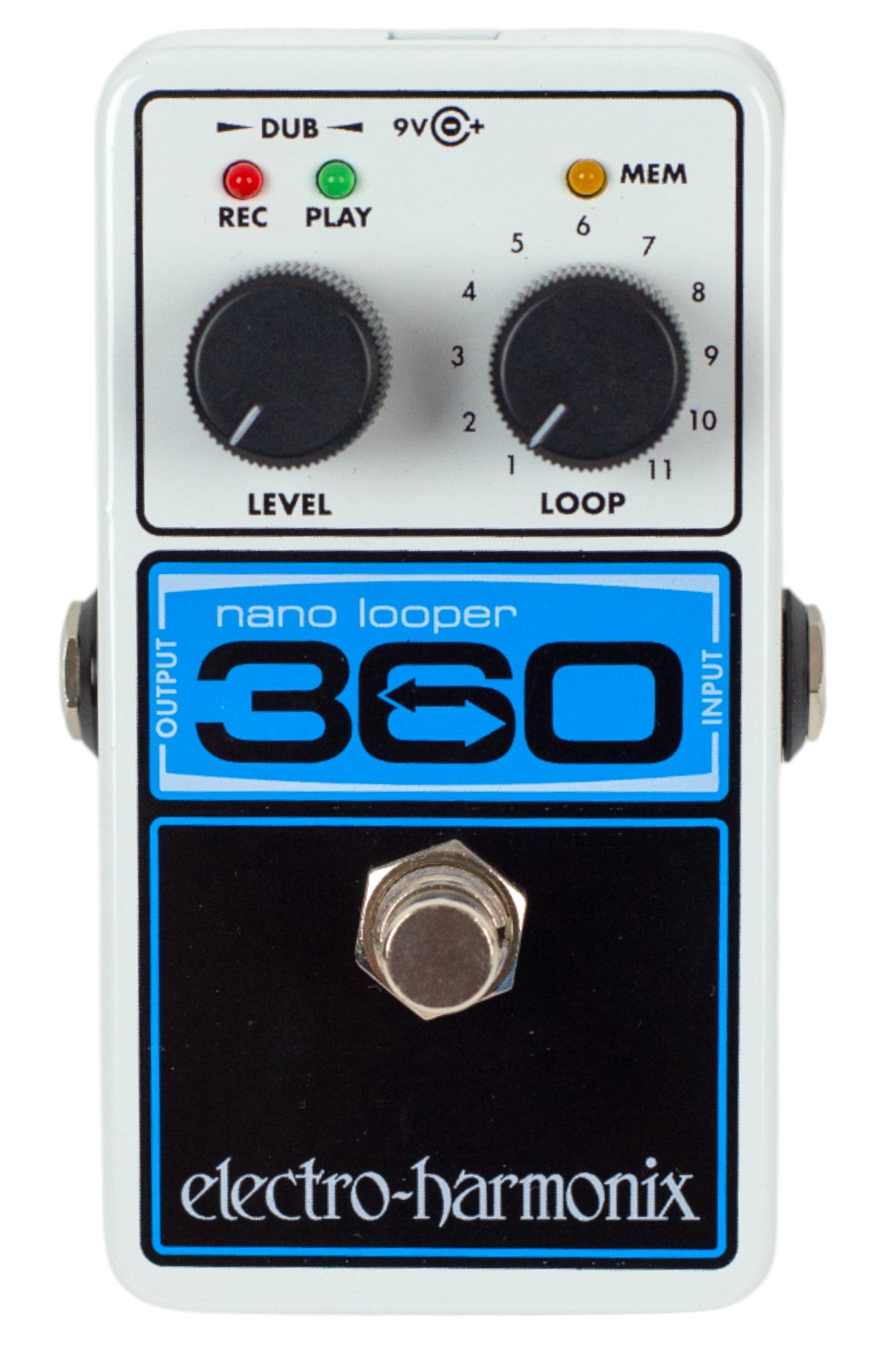 A compact, affordable, pedal looper with 360 seconds of loop recording time and 11 storable loops! The EHX Nano Looper 360 takes the simple, easy-to-use format of a single pedal looper and and adds 11 memory slots for storage of your favorite creations. With 6 minutes of high-quality loop recording time, unlimited overdubs, and easy undo/redo functionality, Nano Looper 360 is compact looper for any pedalboard.