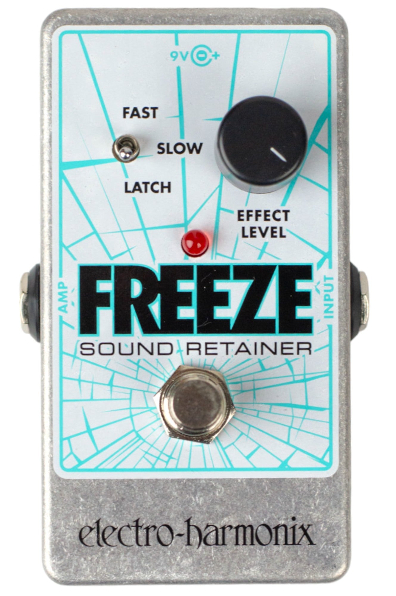 Capture a frozen moment and turn it into a tonally unique sonic foundation. The EHX Freeze Sound Retainer delivers infinite sustain of any note or chord at the press of a momentary footswitch. Release the footswitch and you are again sample ready. Three selectable decay rates, including a latch mode, guarantee liquid, smooth tonal transitions. Hook the Freeze up with your favorite pedals for a sonic collage that will be unlike anything you have ever heard. It’s like adding an extra musician to the band.