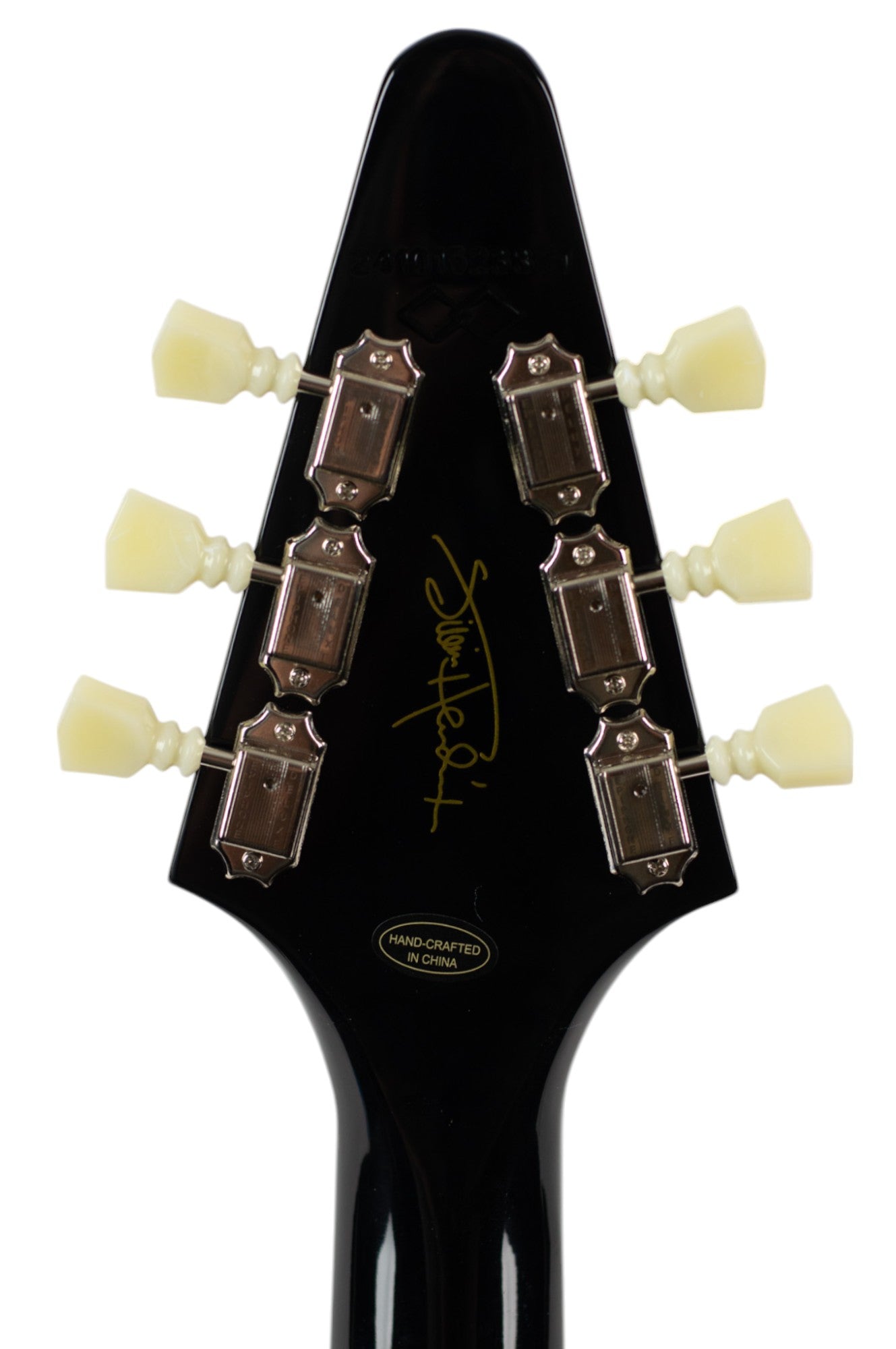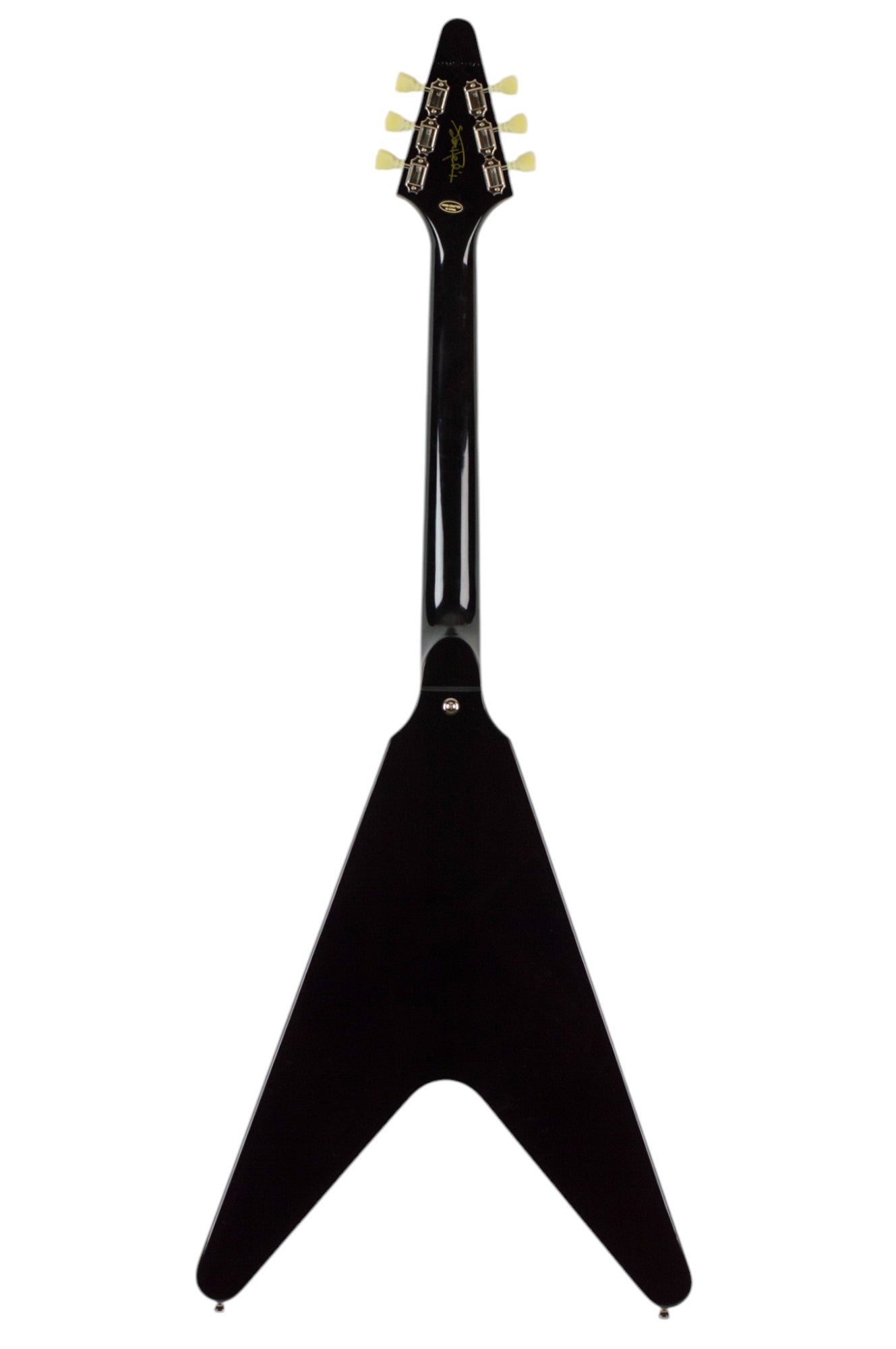 Originally a Sunburst, Jimi Hendrix customized his Ebony-refinished Gibson™ Flying V with psychedelic graphics that he hand-painted, which are recreated here. The Jimi Hendrix “Love Drops” Flying V also features an Inspired by Gibson Custom logo and reproduction of Jimi’s signature on the back of the 1967-style Flying V headstock.