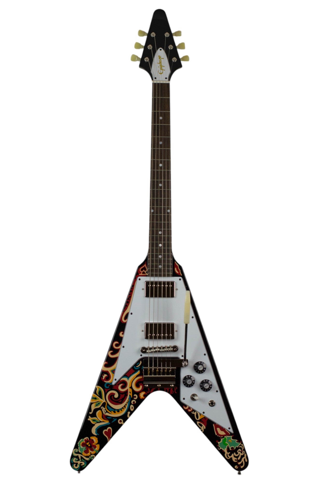Jimi Hendrix™ is widely regarded as the most innovative guitarist of the rock era, a player who took the instrument to places no one else had ever gone before. Now, Epiphone, in partnership with Gibson Custom and the Hendrix family, is proud to introduce the Jimi Hendrix “Love Drops” Flying V™, an Inspired by Gibson Custom recreation of a guitar that Jimi played extensively from 1967-1969.