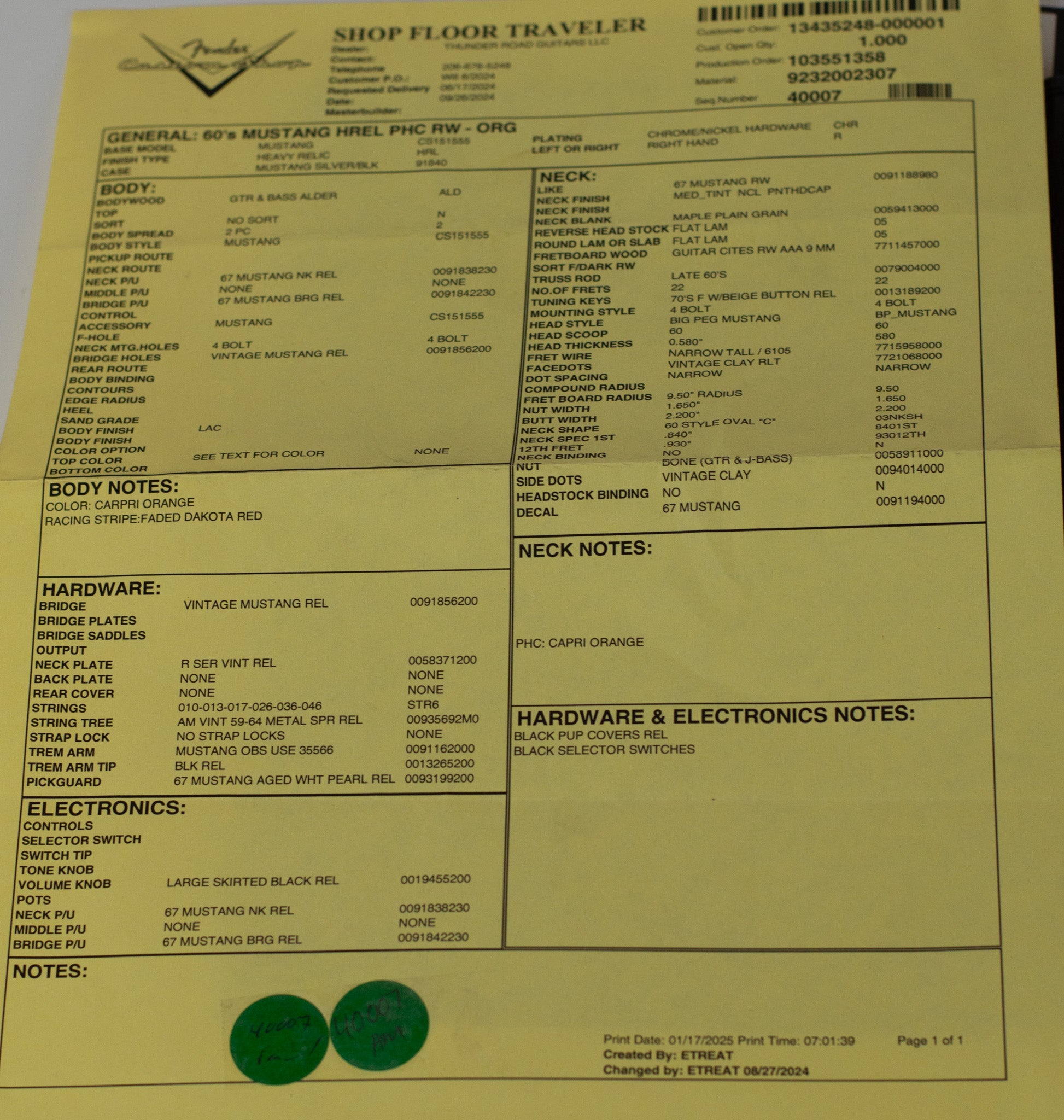 2-Piece Alder Body in Capri Orange Heavy Relic Finish with Dakota Red Racing Stripes