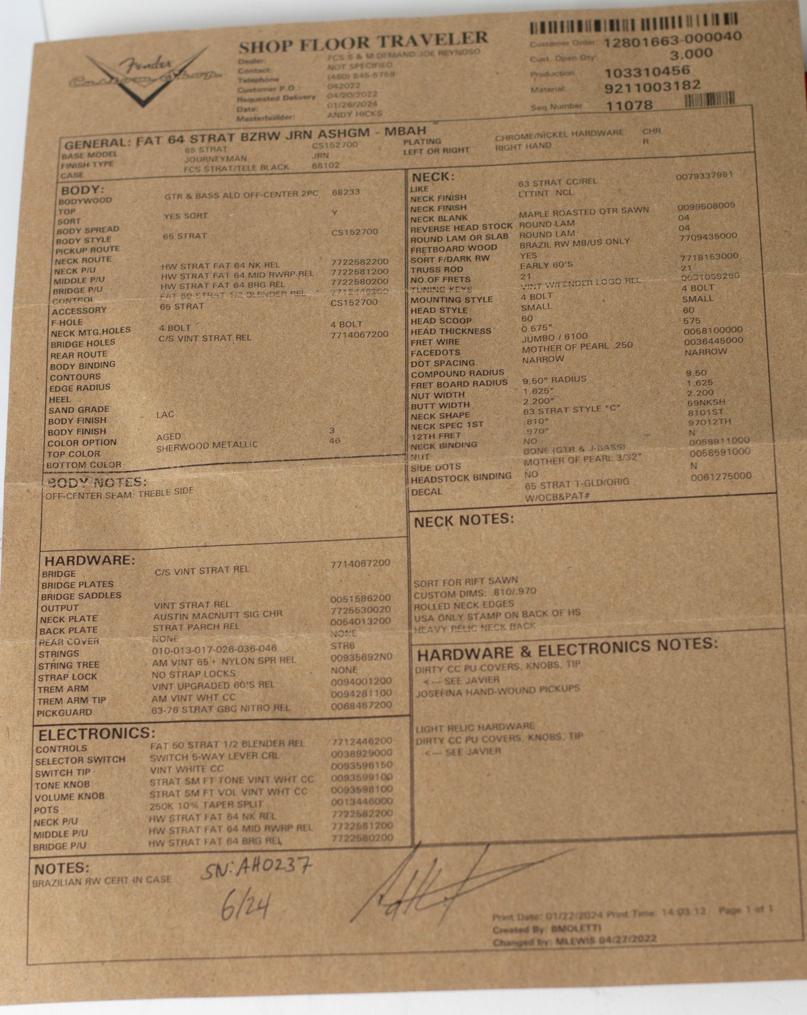 Freshly set up in-house by our esteemed Guitar Tech. Includes Certificate of Authenticity signed by Masterbuilder Andy Hicks. Also included is the Brazilian Rosewood Certification document. Please note that because of CITES restrictions, this guitar cannot be sold or delivered outside of the U.S. See below for more details and specifications.