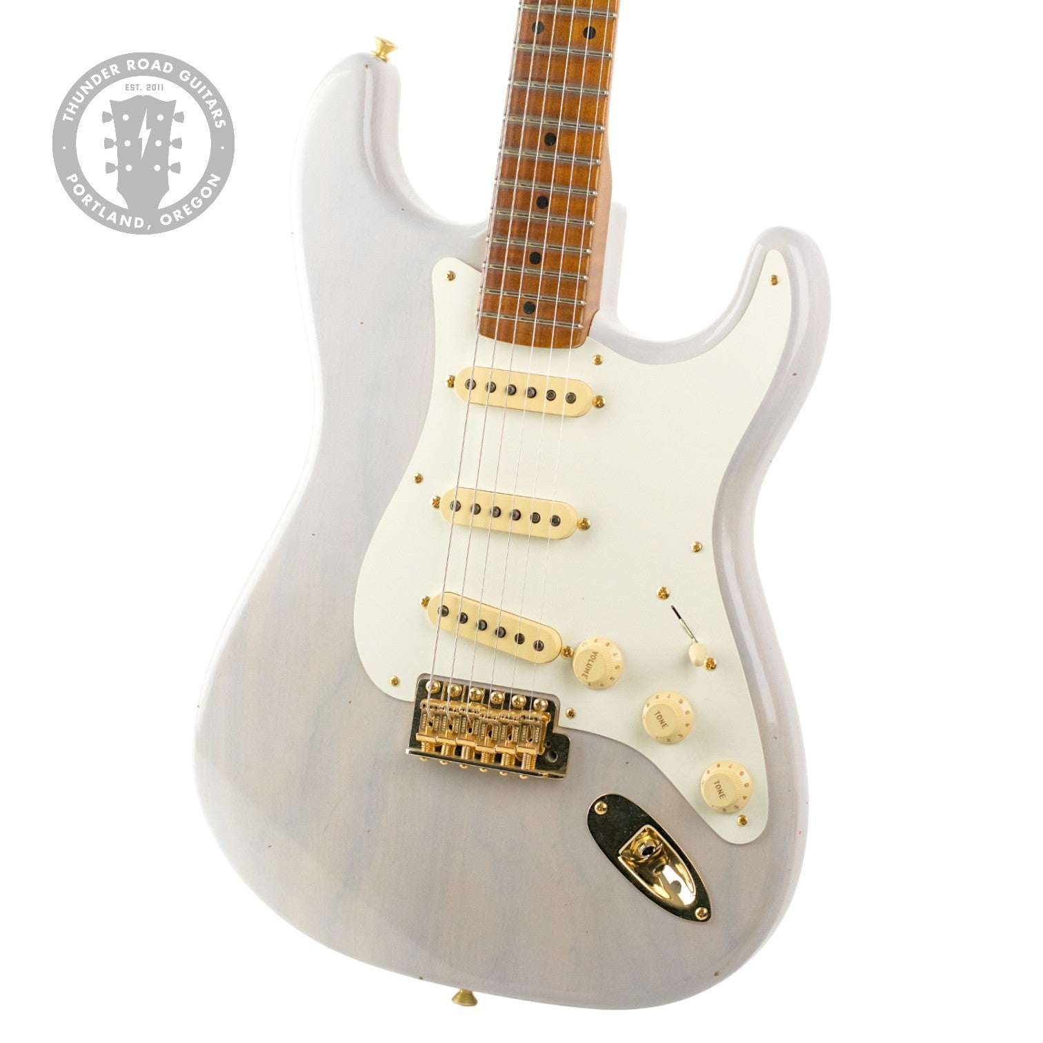 Each Thunder Road 1956 Stratocaster features a light-weight chambered roasted alder body, hand-wound pickups that are slightly overwound to our specs, closet classic hardware, Custom Shop Exclusive RSD bridge, roasted flamed maple neck and a compound 9.5-12" fingerboard radius. We love these guitars and think you will too! If you are after a light-weight resonant Strat that has the look and vibe of a vintage guitar with some modern specs this is the model for you!