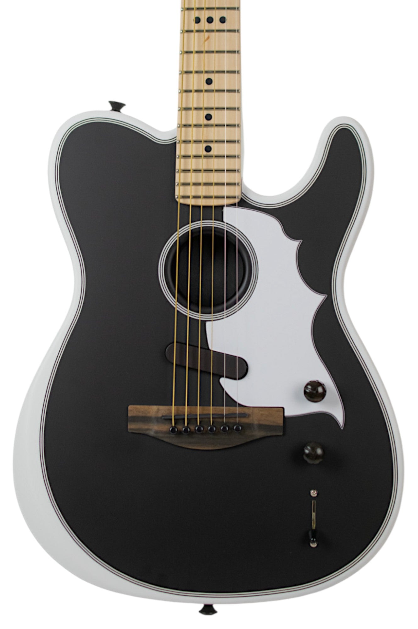 From acoustic shape-shifting to electric rhythm tones, this powerful guitar uses a revolutionary Fender and Fishman®-designed Acoustic Engine that combines a magnetic pickup with an undersaddle transducer to deliver new sonic expression from the studio to the stage. Dubbed the Triplesonic™, this Acoustasonic Tele® was born from the imagination of Jack White with three distinct tonal realms activated by the 3-way switch including acoustic, clean electric, and overdriven electric, all shapeable with the simplicity and convenience of a master tone control.