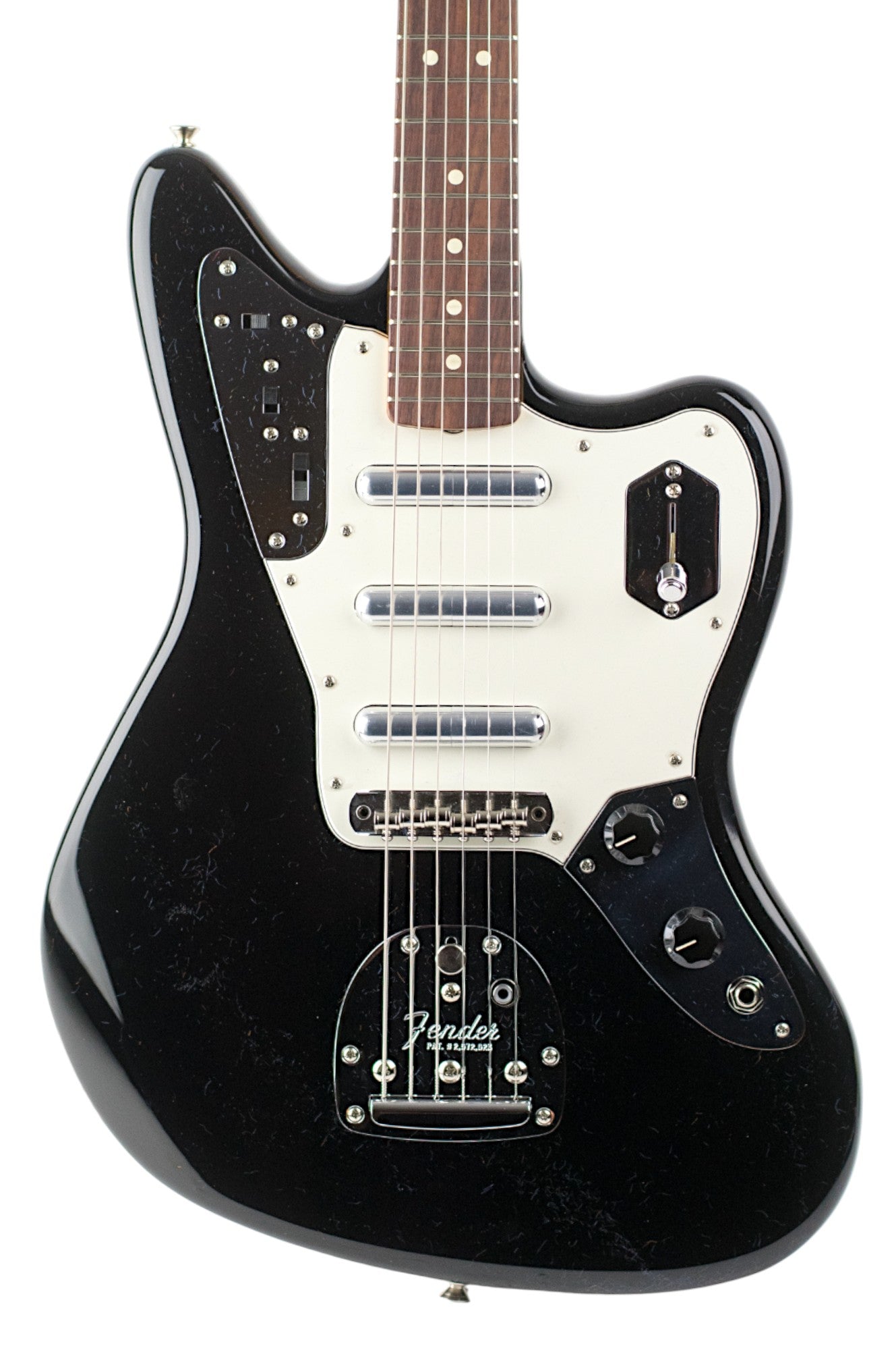 Freshly inspected and set up in-house by our esteemed Guitar Tech. This gorgeous Nitro Lacquer Black Jaguar has tons of cool features according to Johnny's desired specs. See below for more details and specifications.