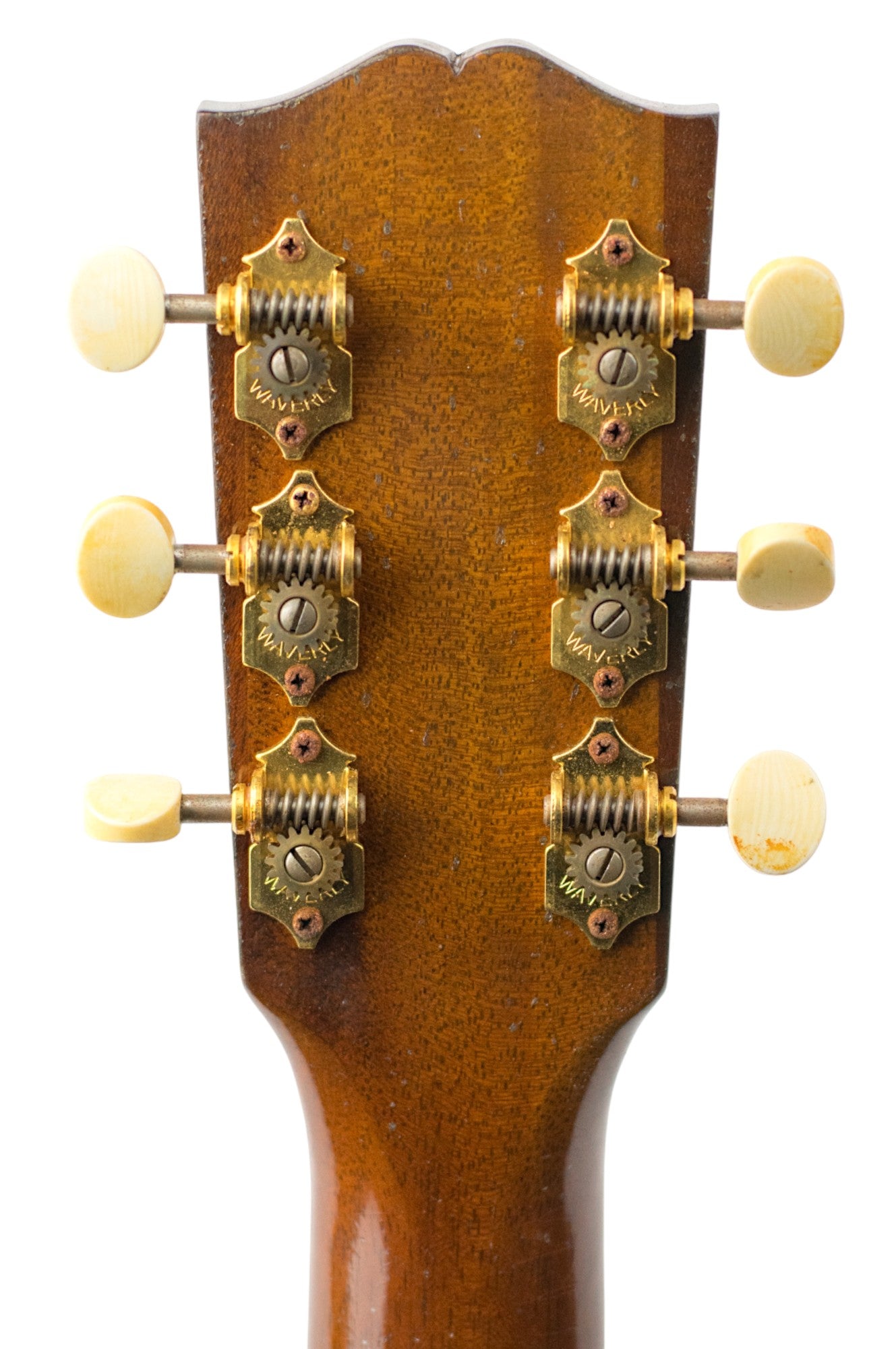 Frank Campbell, Gibson’s General Sales Manager at the time, approached Lucas and tried to convince him to switch to playing Gibson guitars. Lucas said he would–if Gibson would build one to his specifications, and Gibson readily agreed. The result was the Nick Lucas Special, which was introduced in 1926 and was Gibson’s first artist signature model. One of the things that Lucas requested was a compact but deeper body for better bass response. The Nick Lucas Special went through a range of variations in body woods, bridges, and other features, but they all had a deeper body in common, which contributes to the model’s unique voice, which is rich and surprisingly full and complex for a small-bodied instrument.