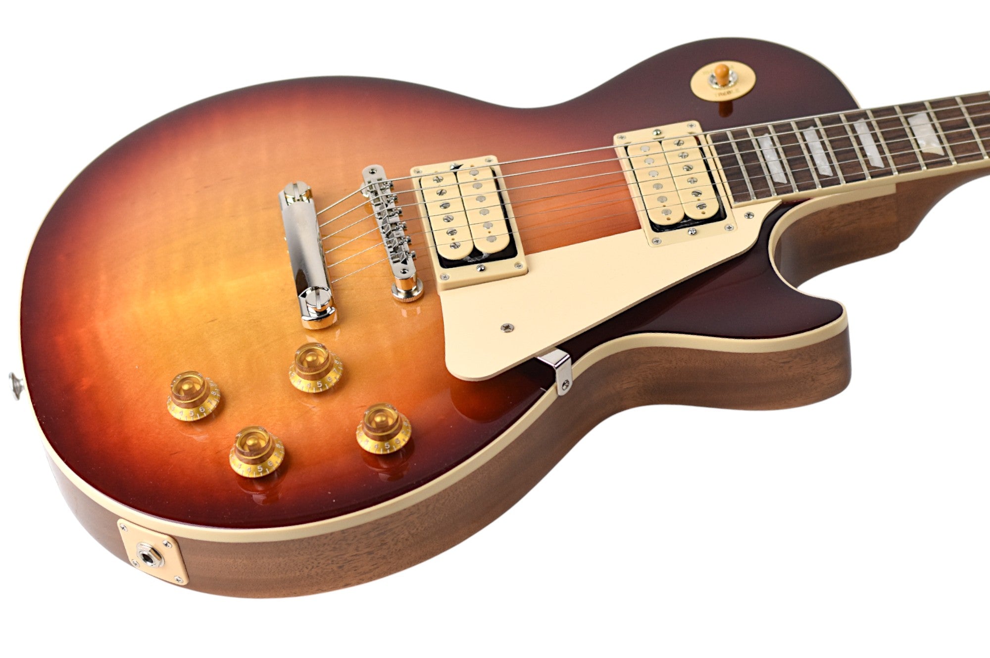 The uncovered, calibrated Burstbucker™ 1 (neck) and Burstbucker 2 (bridge) pickups are internally the same as their standard Burstbucker counterparts, with the exception of the Double Classic White bobbins. They are handcrafted in the Gibson Pickup Shop, loaded with Alnico 2 magnets, and hand-wired with audio taper potentiometers and Orange Drop® capacitors. The Double Classic White pickup bobbins and Vintage finishes combine to give the Les Paul Standard 50s Double Trouble an elegant vintage vibe. While they have a vintage-style finish and an accessible price, production is limited to only 500 guitars in each color, meaning there’s limited availability, so act fast and get your favorite now while you still can!
