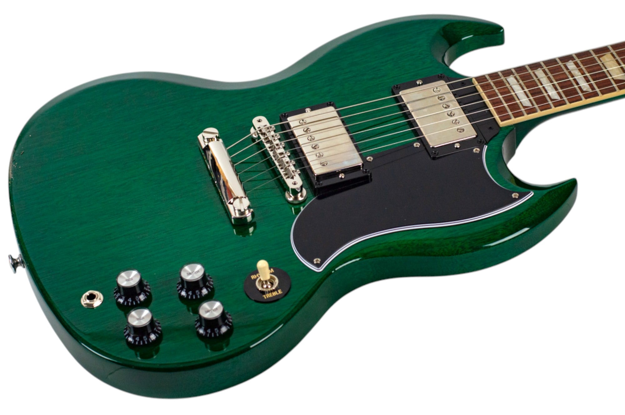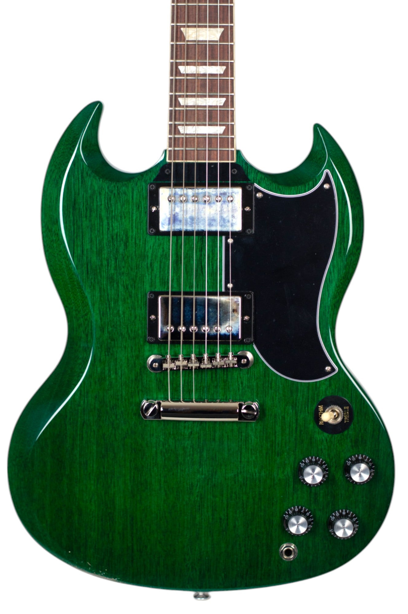 As with the earliest SG models, the SG Standard ’61 features a 5-ply teardrop-shaped pickguard. The nickel-plated hardware includes a classic-style ABR-1 Tune-O-Matic™ bridge and aluminum Stop Bar tailpiece that help contribute to the model’s excellent sustain. The SG Standard ’61 delivers the legendary SG tone, outstanding playability, and American-made Gibson quality that have made the SG the choice of countless players around the world for decades.