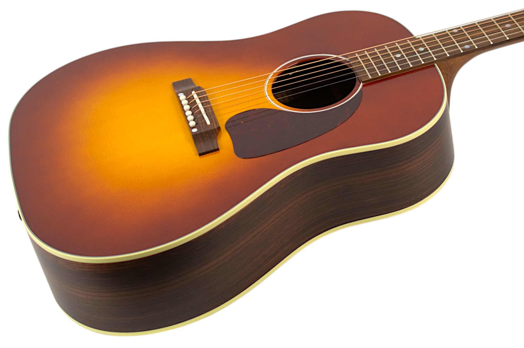 The J-45 Studio Rosewood is equipped with an Advanced Response profile and satin nitrocellulose lacquer-finished utile neck for smooth, easy playability. The Advanced Response neck profile sits in between some of the other Gibson neck profiles and is not too large or too thin but fits “just right” in the hand for many players.