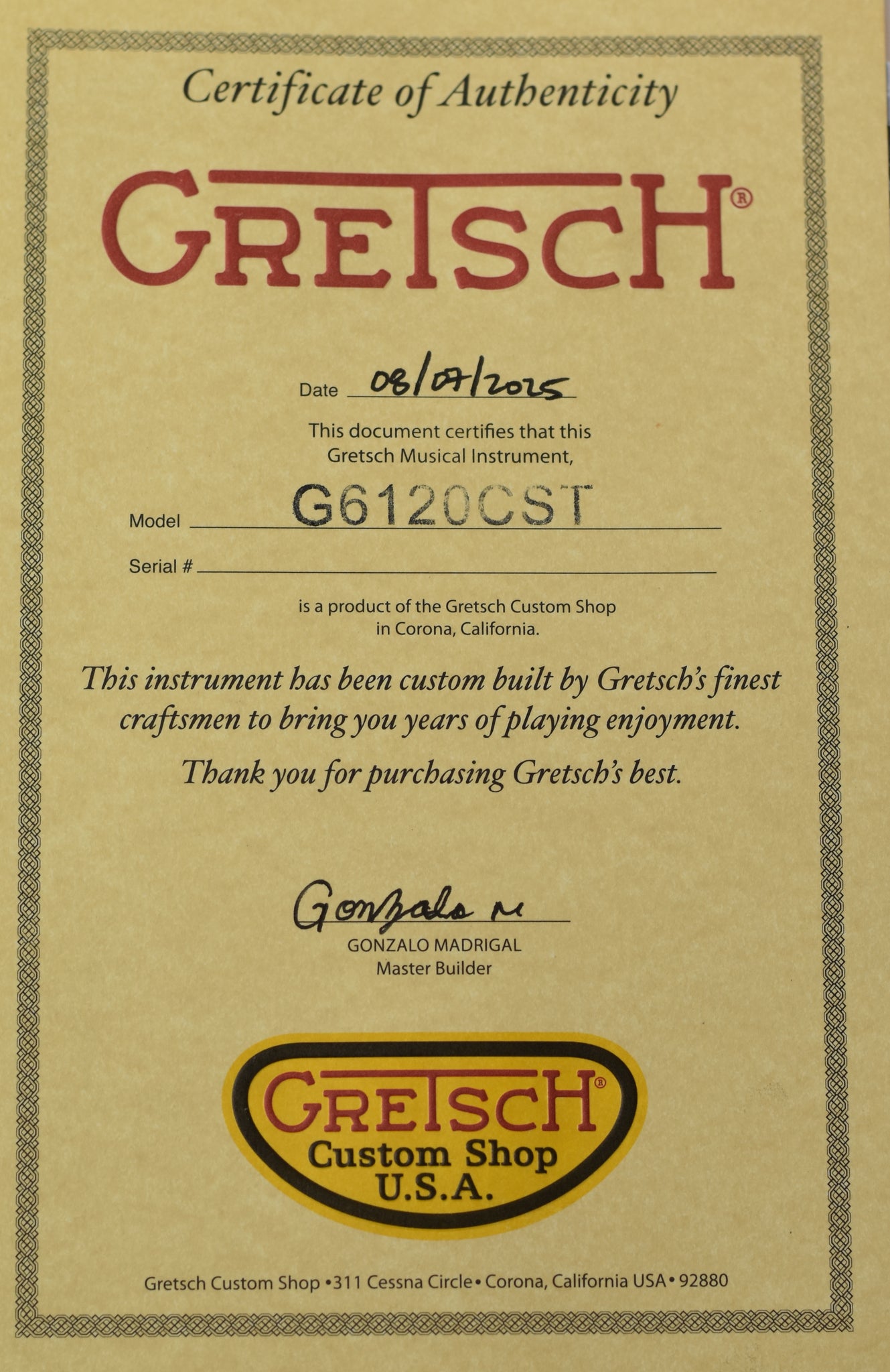 FROM GRETSCH CUSTOM SHOP: