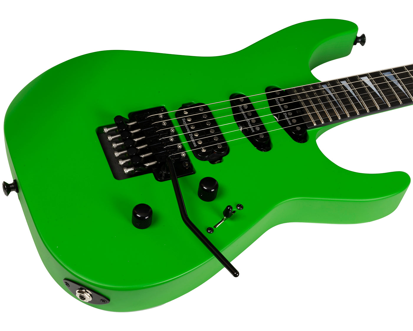 Designed with our trademark metal style, the American Series Soloist SL3 comes in striking Gloss Black, Platinum Pearl, Riviera Blue or Satin Slime Green finishes with color matched Jackson pointy headstocks and black hardware.