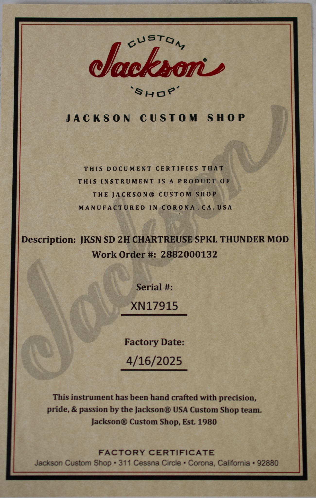 The Jackson Custom Shop Thunder Mod is exclusive to Thunder Road Guitars. A true Pacific Northwest original instrument! See below for more details and specifications.