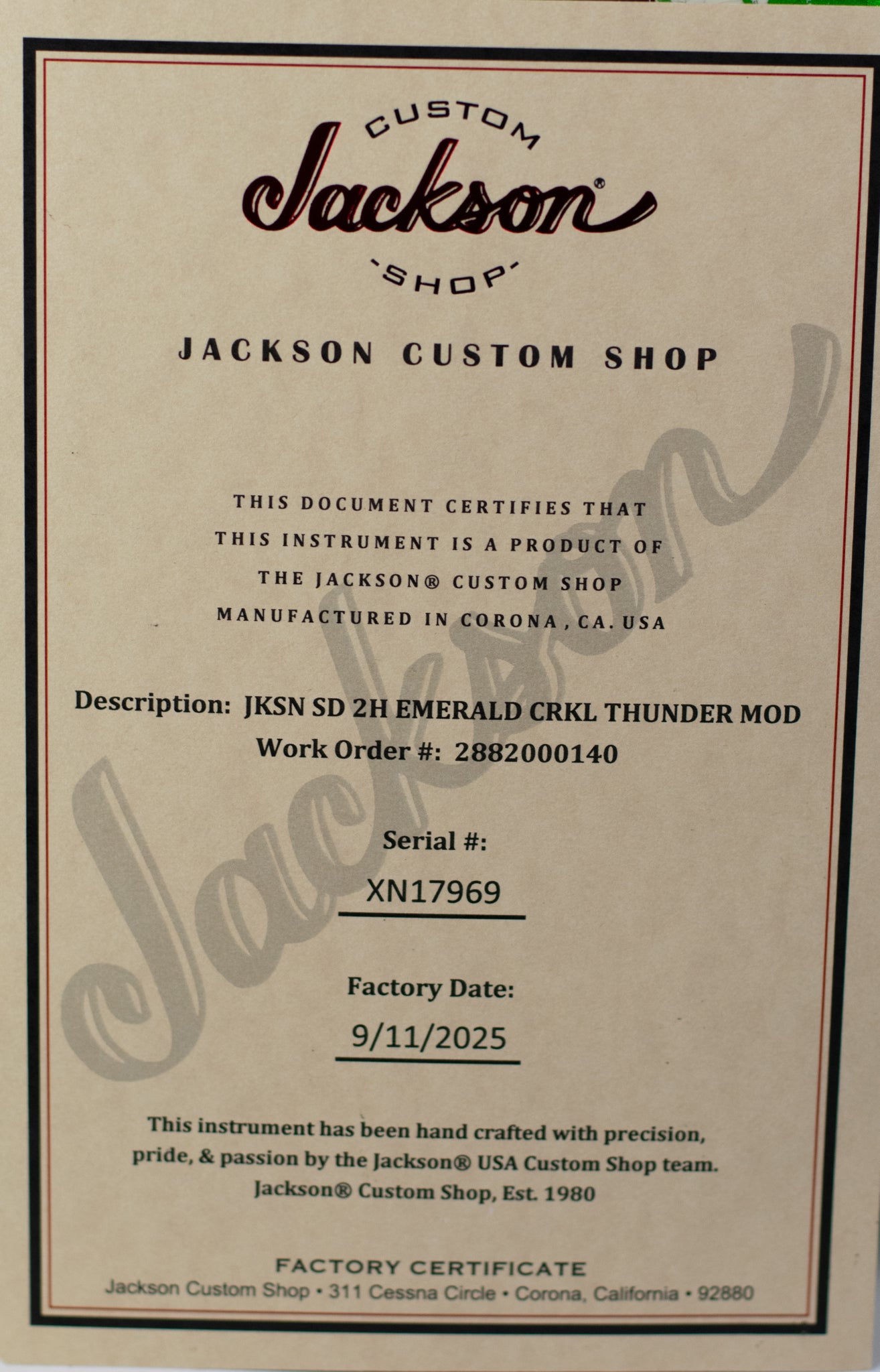 The Jackson Custom Shop Thunder Mod is exclusive to Thunder Road Guitars. A true Pacific Northwest original instrument! See below for more details and specifications.