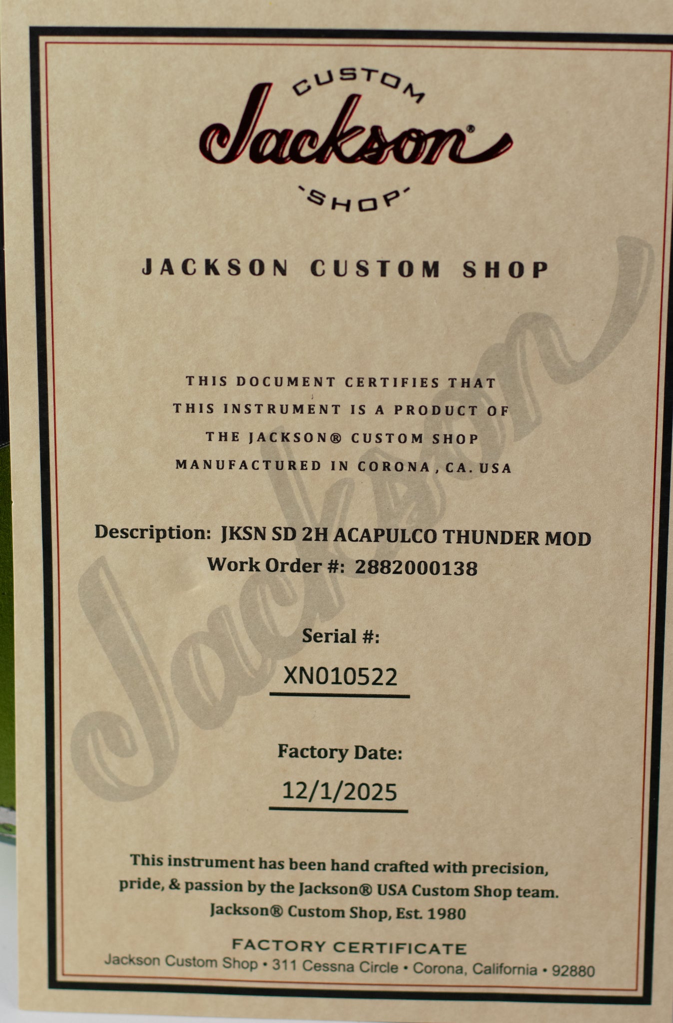 FROM JACKSON CUSTOM SHOP: