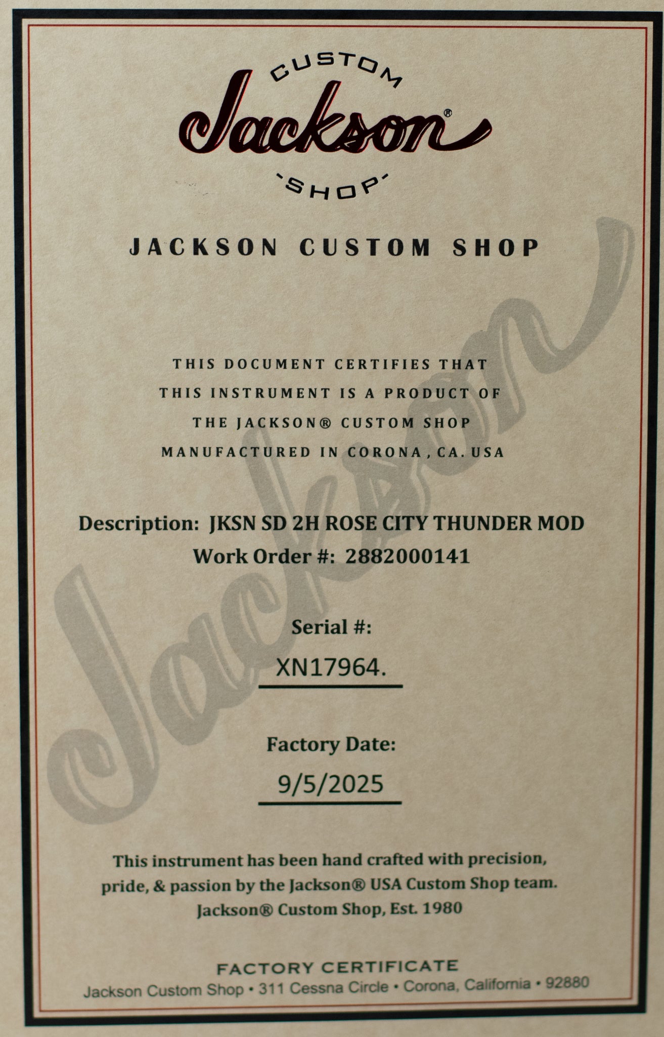 The Jackson Custom Shop Thunder Mod is exclusive to Thunder Road Guitars. A true Pacific Northwest original instrument! See below for more details and specifications.