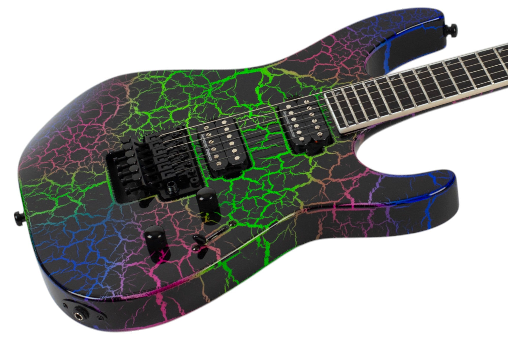 Yet another bold step in the world of high-tech guitars, the Pro Plus SL2 Crackle also bears Jackson's traditional appointments - black hardware, dome-style control knobs, durable finish that easily shakes off sweat and other grime, pearloid piranha fingerboard inlays and the famous Jackson pointed 6-in-line matching headstock.