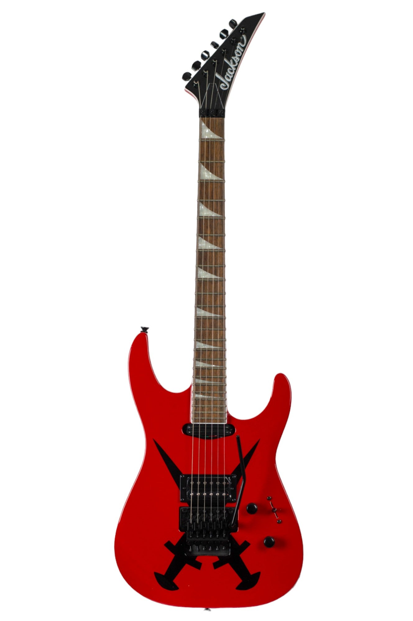 A Jackson high-output humbucking bridge pickup and rail-style neck pickup power this metal beast with an expansive voice loaded with crunchy, full-bodied tone ideal for brazen lead work or assertive rhythms runs. Tone is fully customizable with three-way pickup blade switching and single volume and tone controls, while a Floyd Rose® Special double-locking tremolo bridge system provides superior string stability and dynamic tremolo action.