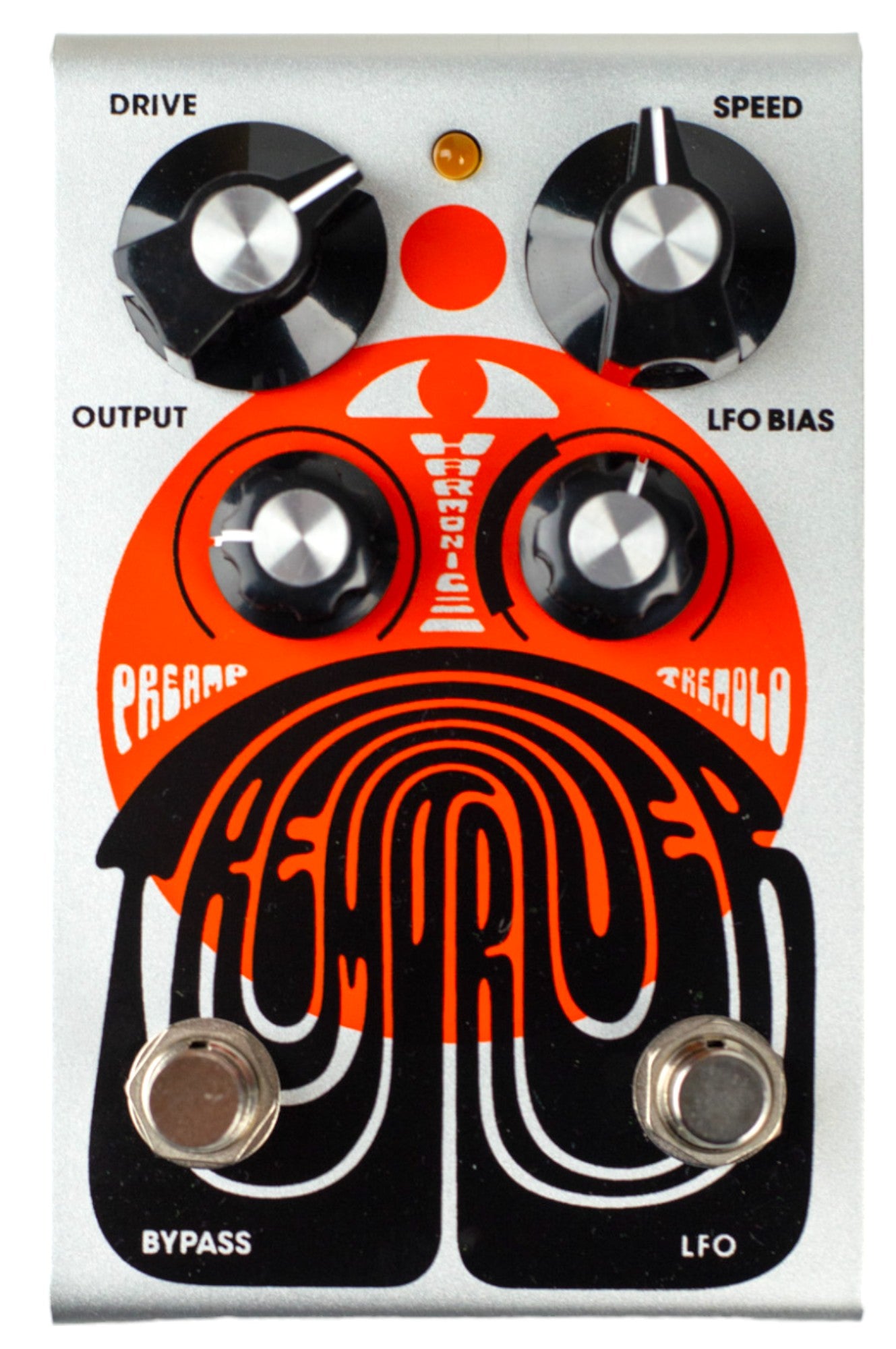Tremdriver is a high headroom preamp that makes any rig sound bigger and better combined with a foot-switchable harmonic tremolo that gives you amazingly lush and swirly pulses. Designed to run towards the end of your pedal chain, the Drive and Output controls puts you in clean boost heaven. Then switch on the harmonic tremolo mode, adjust the Speed from a slow pulse to a quick quiver, and prepare to be mesmerized for hours!