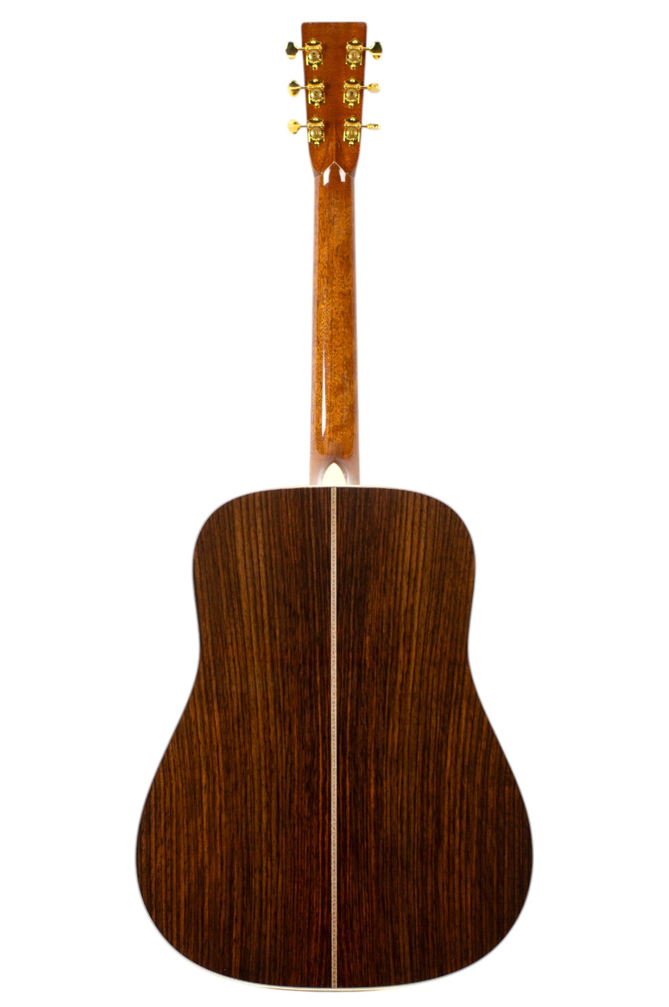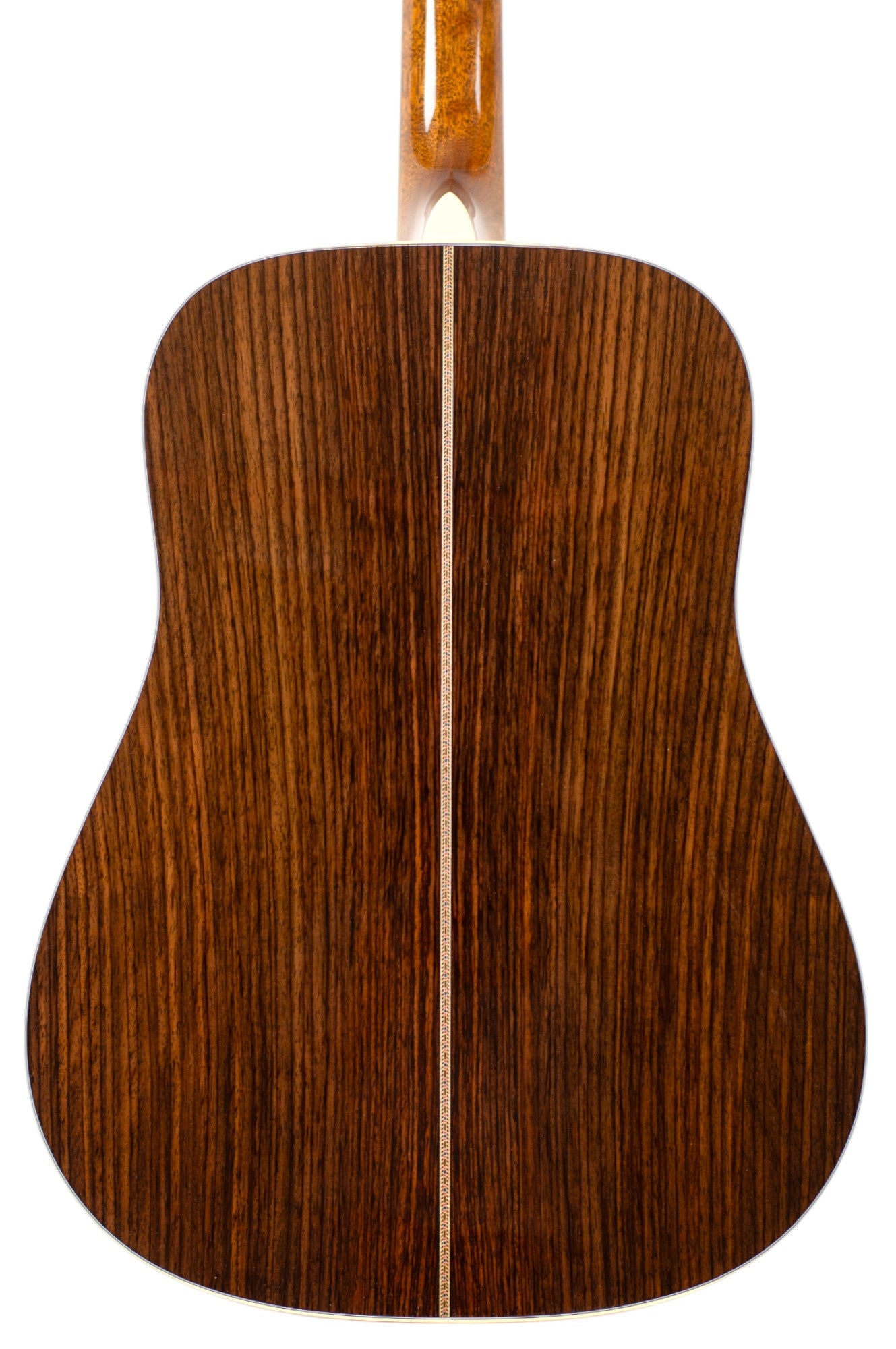 Adorned with intricate abalone details, the D-42 features snowflake inlays on the bound ebony fingerboard, a shimmering rosette, and pearl trim on the top that wraps elegantly around the fingerboard. Complete with antique white binding, an ebony bridge with bone pins, and gold open gear tuners, the D-42 is a guitar you can trust to unleash the artist within.