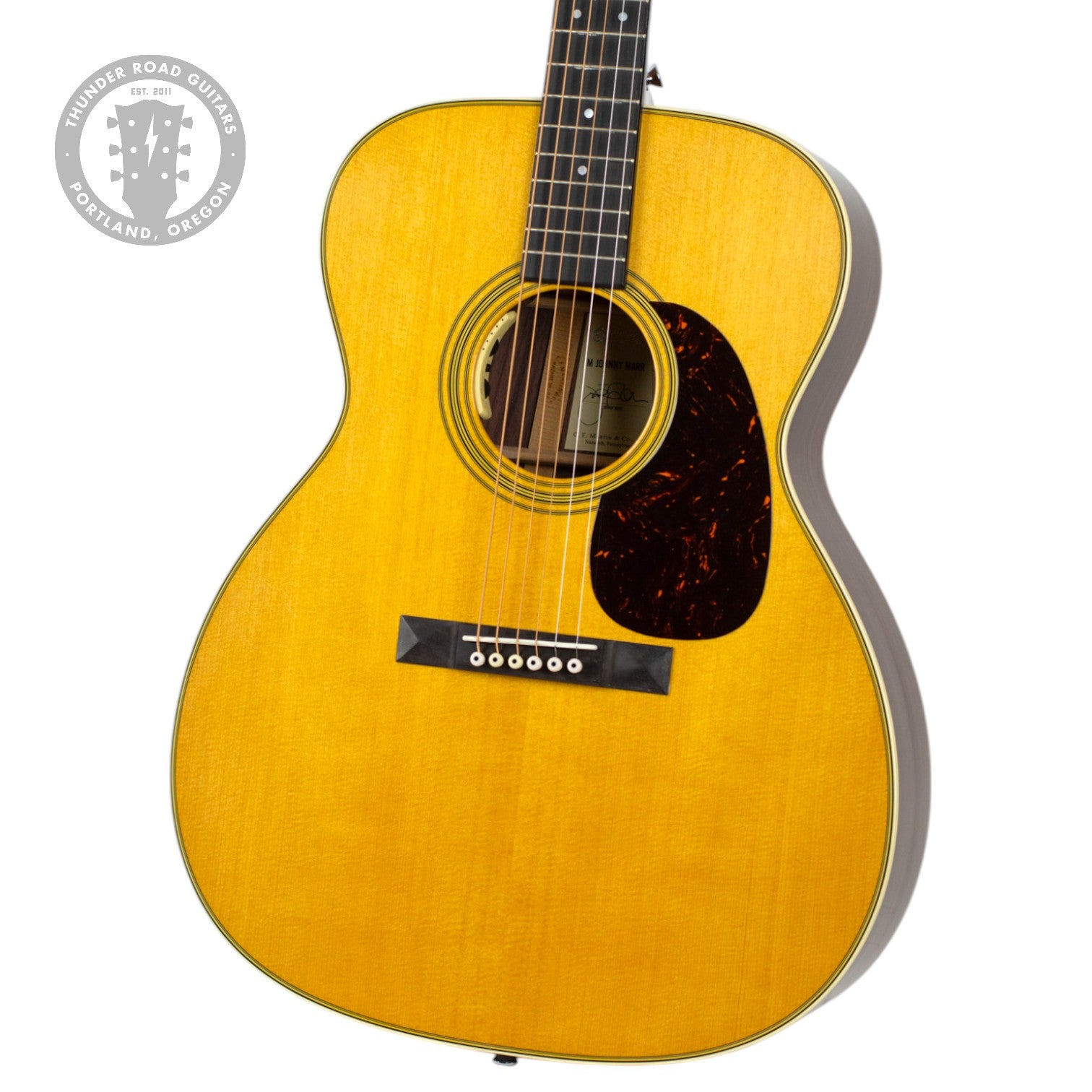 The Martin M-6 Johnny Marr unites the legendary craftsmanship of Martin and the innovative artistry of one of music’s most iconic guitarists. Crafted with solid East Indian rosewood back and sides and a solid spruce top, it delivers deep bass and rich overtones, while its Grand Auditorium body size ensures plenty of comfort and projection, combining the thickness of a 000 with the width of a Jumbo.