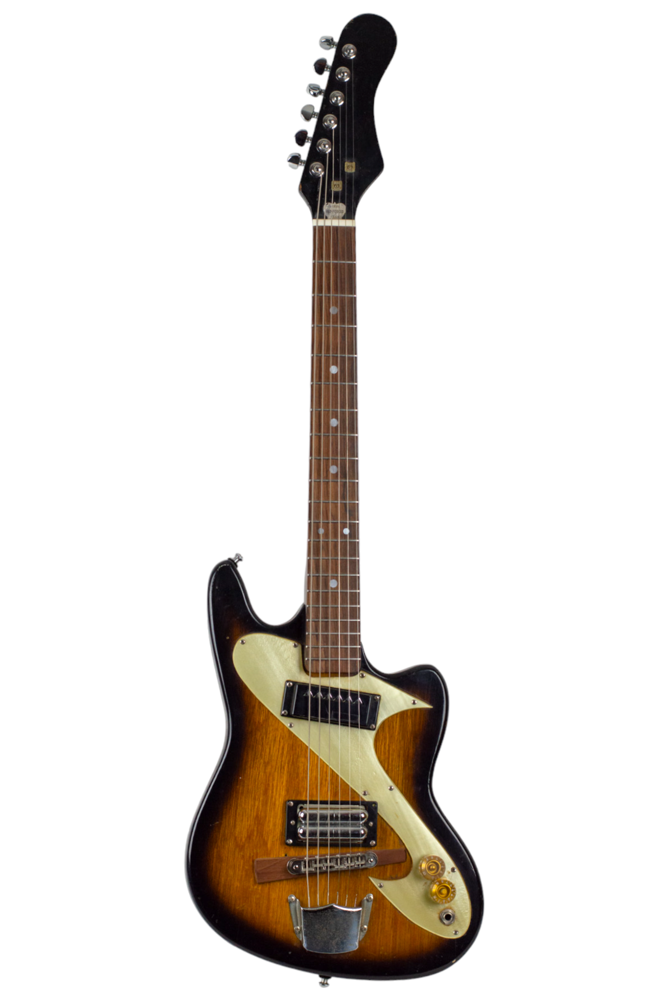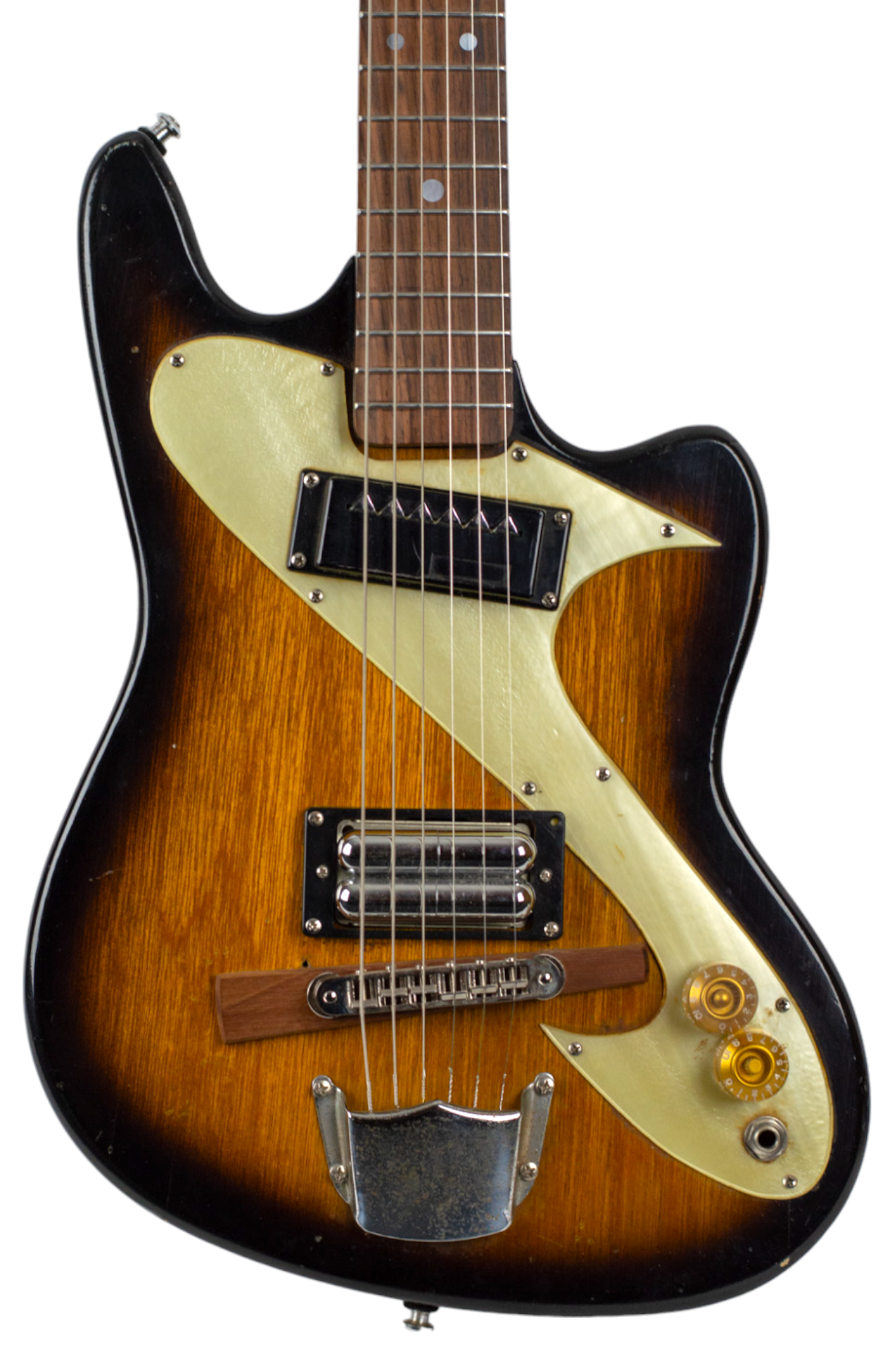 Laminate Body with Tobacco Sunburst Finish and Swoopy Pearloid Pickguard