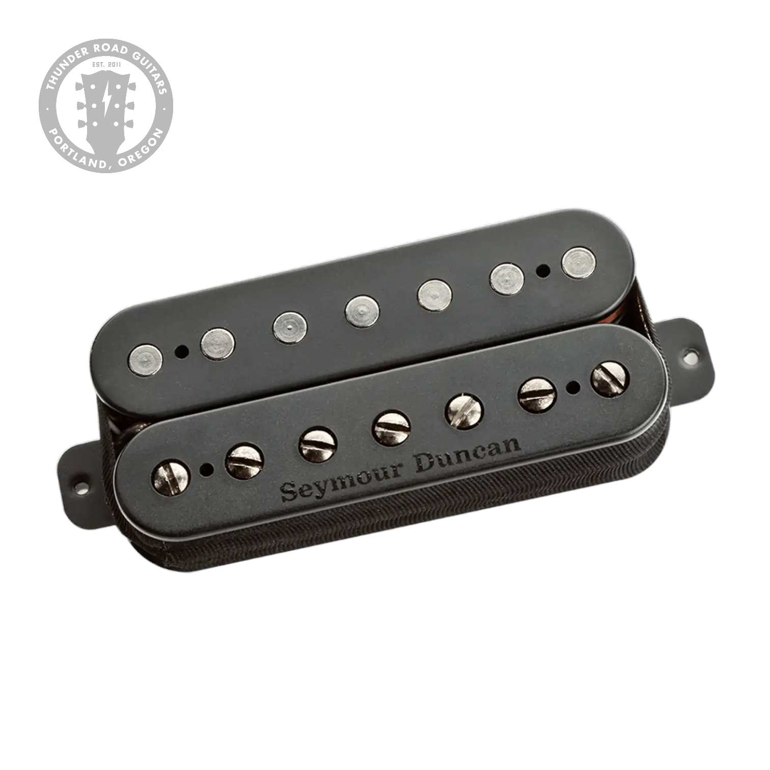 Hand built in our Santa Barbara, CA, factory, the Distortion uses a large ceramic bar magnet, nickel-silver bottom plate, 4-conductor lead wire for multiple wiring options, and is vacuum wax potted for squeal-free performance.