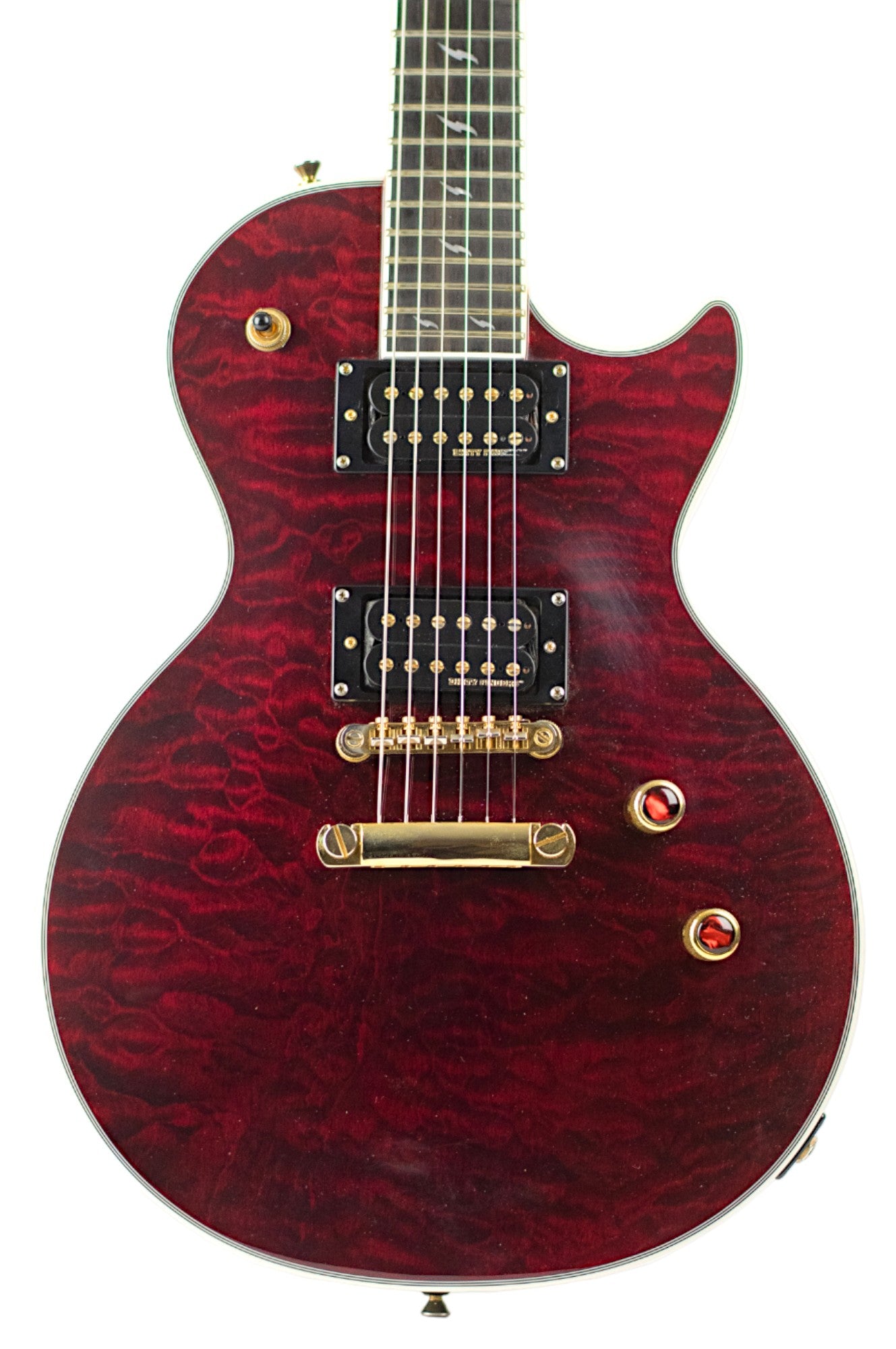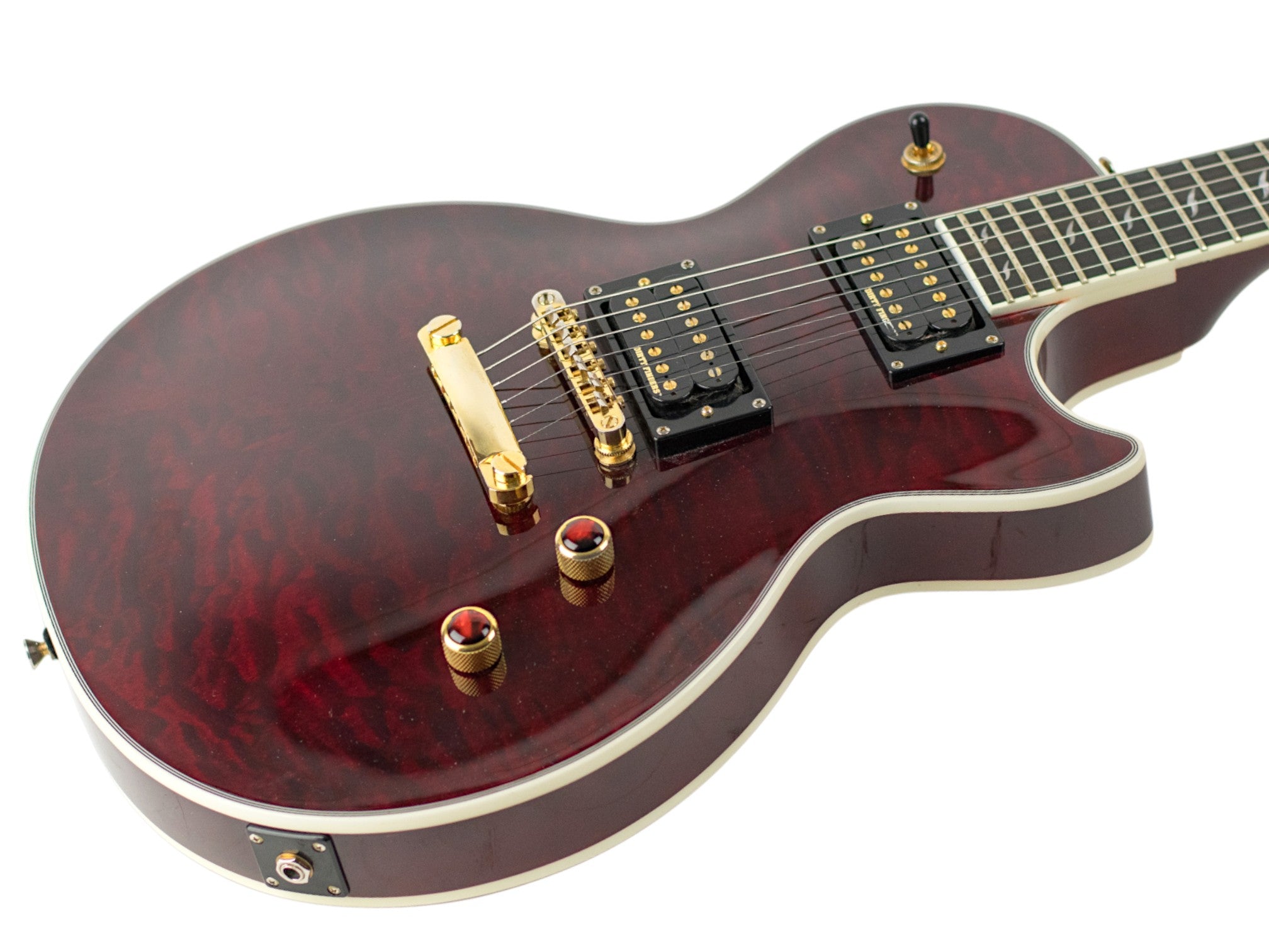 Quilted Maple Veneer Top on Double Bound Mahogany Body in Black Cherry Finish